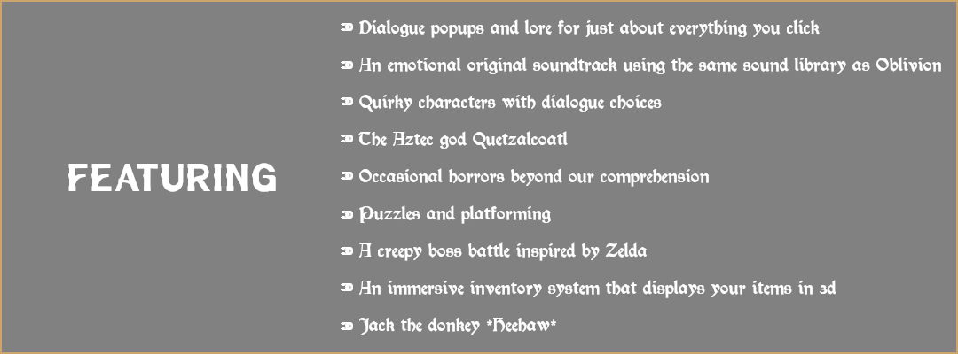 Welcome to the Aztec-inspired world of Tolan. In this adventure RPG, you will be immersed in a tale about how Quetzalcoatl got all tangled up.